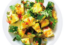 Классическая азиатская закуска, огурцы, кунжутное масло, соевый соус, перец чили, специи. Classic Asian appetizer, cucumbers, sesame oil, soy sauce, chili peppers, spices.