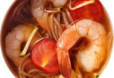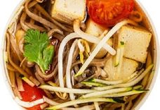 Говяжий бульон, лапша соба, тофу, цуккини, черри, соевые ростки Beef broth, soba noodles, tofu, zucchini, cherry, soy sprouts